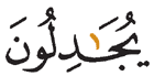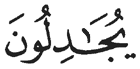 الحروف ذات اللون الأحمر تُمَد مَداً زائداً، فالأحمر الغامق يعني مَدّ الحرف ست حركات كما في كلمة (الْحَآجّ) حيث أن الألف بلون أحمر غامق (علماً أن زمن الحركة هو نصف ثانية تقريباً)، في حين أن الألف في كلمة (أَوْلِيَآء) بلون أحمر قاني كي تُمَد بخمس حركات، والأحمر البرتقالي كي يُمَد مَدّاً جائزاً اختيارياً، أما الإشارة الكمونية فهي للتعبير عن المد الطبيعي بحركتين فقط. |
