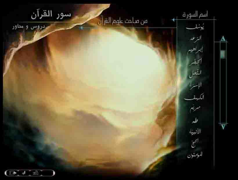 200 TV episodes, the duration of each one 30 minutes, each episode analyze Sura of The Noble Qur'an (or part of it) by studying it through the following principles (In the hand of Sura, Total topics of Sura, Sura's principle, lessons taken from Sura), these principles could came in one episode or partitioned on many episodes, Comment by Dr. Yasser Darwich, where intervened it the Qur'anic examples by the voice of the famous recites. |